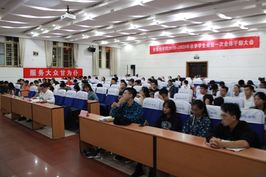 学生会在本部民主楼礼堂举行了第一次全体干部大会。党委副书记史建权老师、学工办主任师雷宏老师、学生会指导老师张艳武老师出席本次会议。全体学生会干部参加会议。本次活动由周婕同学主持。