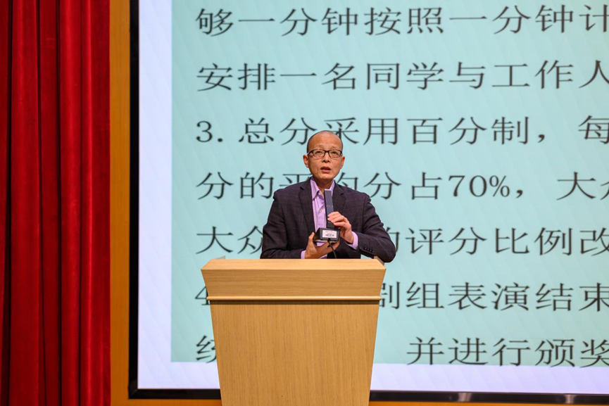 比赛伊始,主持人章羽诺为大家介绍了本次心理剧大赛的主题和评分规则,随后,师雷宏主任在开场致词中指出,作为大学生,作为中国现代化建设未来的主力军,同学们应该注重身体健康和心理健康,健康的身心是快乐生活学习之本,没有健康的身心,一切的事业都将无从谈起。