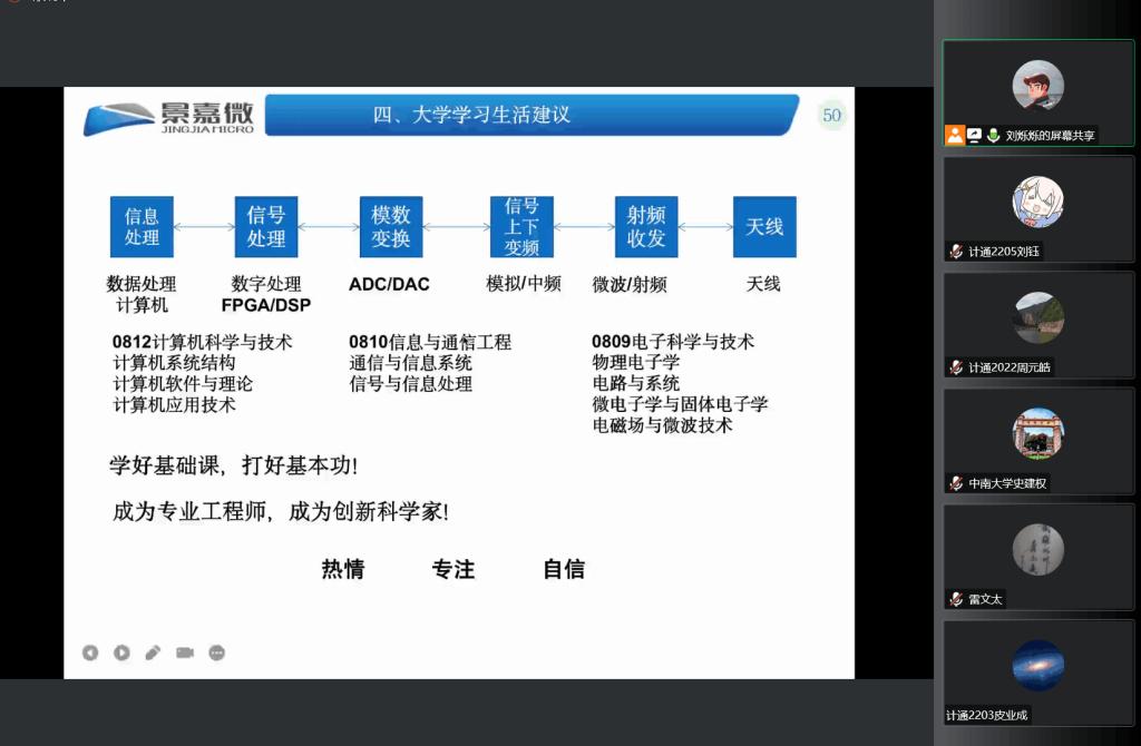 与景嘉微联动授课圆满结束。这次授课,不仅增加了新生们对计算机类专业和电子信息技术行业的了解,更是一次鼓励新生不断提升自我、成为有用人才、回报国家社会的爱国主义教育课程,起到了校企合作育人重要作用。作为国家未来发展动力的大一新生们必将以扎实的专业知识、过硬的综合实力,秉“敢为天下先”的创新精神,驷“信息”之玉虬,劈波斩大浪!