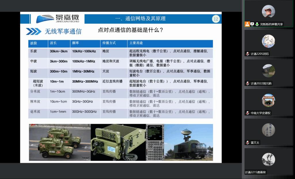 授课中,张总经理从通信网络及其原理、战斗机电子信息系统和典型电子信息系统三个方面向参与讲座的新生们进行了详细的讲解,用易懂且不失专业性的语言、生动的例子、形象的图片和严谨的数据加深了新生们对电子信息科学的认识和理解。