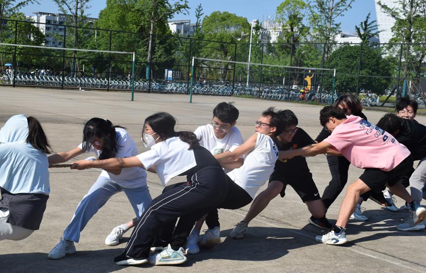 而在赛况更加激烈的淘汰赛中,各队目光坚毅,紧盯代表胜利的红色丝结。一次次拖拽,一声声呐喊,都迸发出对抗的火花。紧张的气氛没有阻挡参赛者们的步伐。赛场被欢呼声和喝彩声包围着,处处洋溢着热血青春的气息。