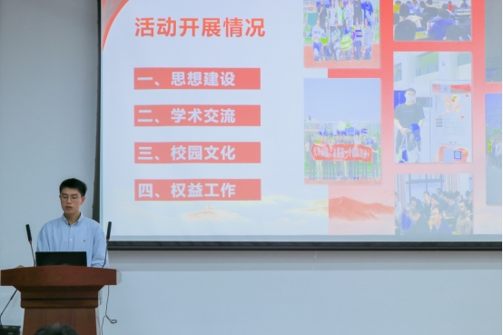 朱鹏阳同学介绍了研会的整体情况,详细汇报了研会过去一年的工作成果,并介绍了研会制定的规章制度和工作流程。他表示,未来一年,研会全体成员将积极进取,努力将研会打造成同学们身边“找得到、信得过、离不开”的学生组织。