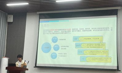 会议开始,宋晓萌老师介绍了学委的工作内容,希望各位学委认真负责,积极开展班级内的学习活动,营造良好学习氛围。同时宋晓萌就学服和学校知新馆开设的辅学课程展开了介绍并鼓励同学们积极参与。