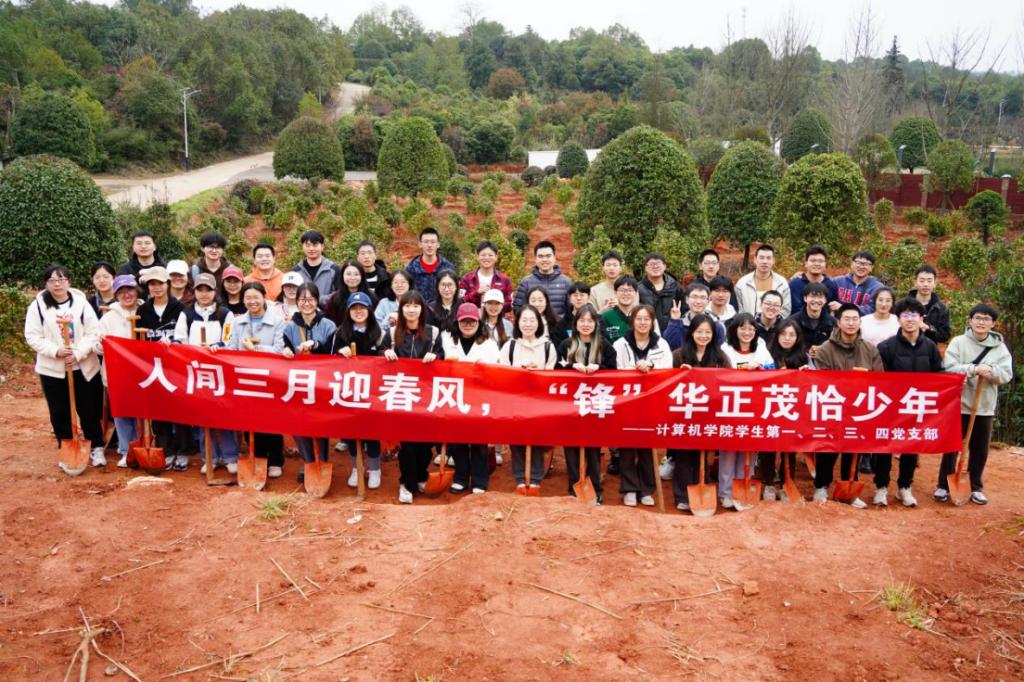 学生一、二、三、四党支部的同志们前往长沙县黄兴镇杉木园开展植树活动,学生一支部支部书记陈司宇、学生三支部支部书记姜雨辰带队前往。