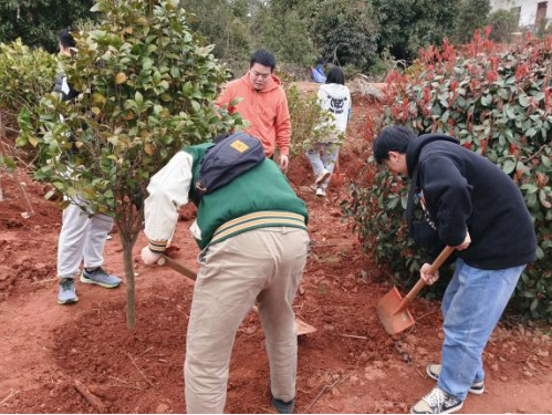 早上八点,同志们准时出发,有序乘车前往杉木园。在当地工作人员的引导下,同志们领取树苗前往指定地点植树,向工作人员学习了植树要领后,四人一组开始植树。过程中,同志们通过植树活动亲近自然,体会到劳动和保护环境的快乐。