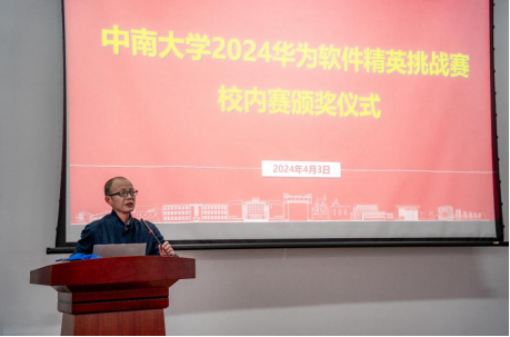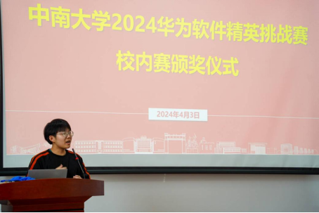 2024华为软件精英挑战赛赛内颁奖仪式于新校区信息楼535举行。武汉研究所人力资源高级经理严弢,博天堂娱乐城学生工作办公室主任师雷宏出席颁奖仪式。