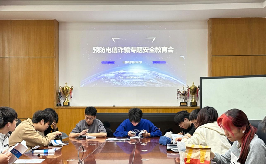 2022级于4月30日在信息楼114开展了防范电信诈骗安全教育会。2022级辅导员刘烁烁老师出席,2022级年级会及全体班长参加会议。