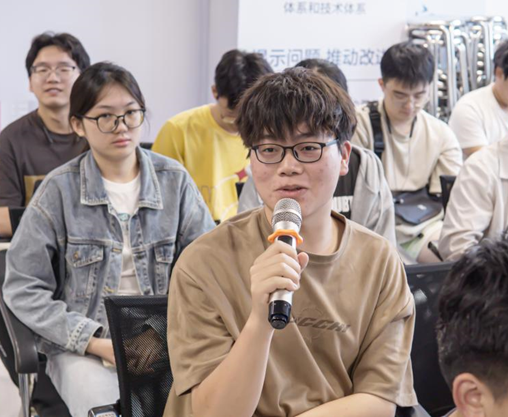 在接下来的学长学姐答疑环节,学生们踊跃提问,问题涉及学历要求、岗位选择、晋升通道和面试要求等方面,两位校友细致解答,现场气氛热烈。