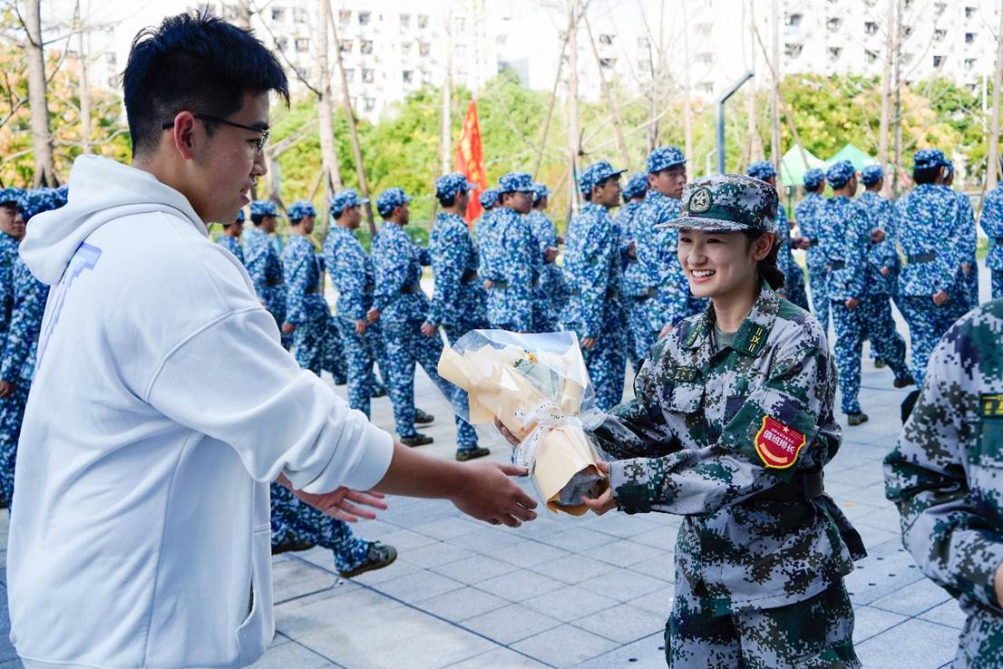 团委学生会前往2024级新生军训场地,看望正在辛勤指导同学们的带训教官们,为他们献上鲜花,表达真挚的敬意和深深的谢意。