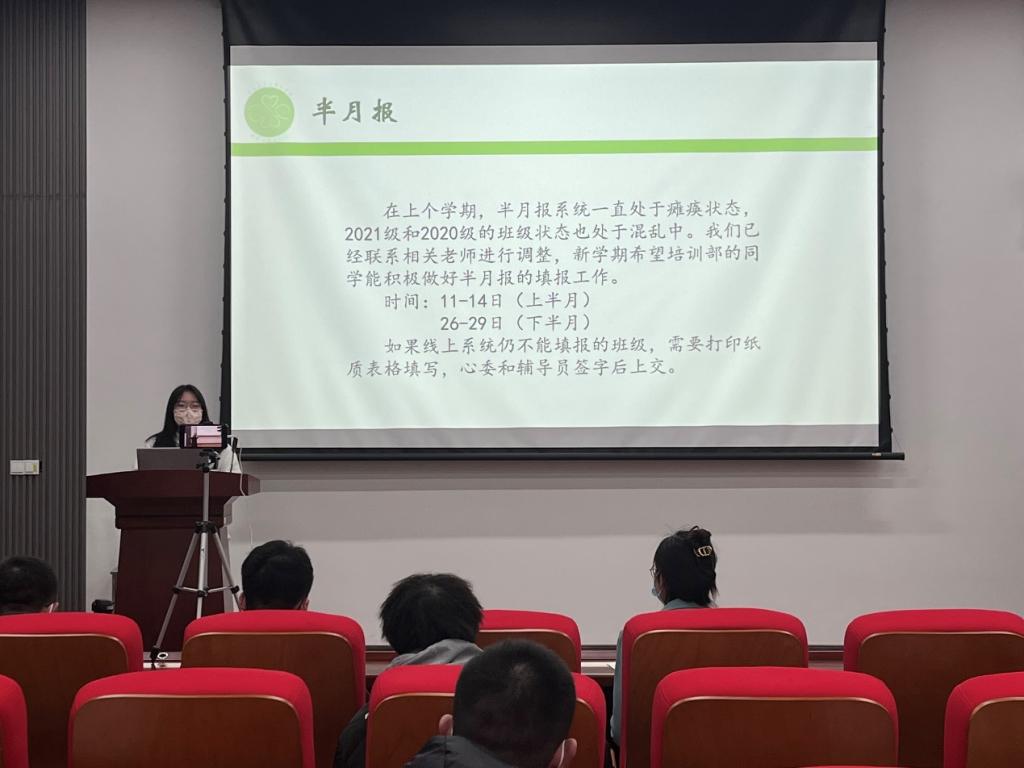 最后,主席鄢雨凡详细介绍了本学期日常工作安排,包括积极填写半月报,关注解心团,准备525心理健康节活动,并且希望征集更多的活动想法。心助会未来发展要坚持普及心理知识、扩充新媒体宣传力度和加强心助会内部建设。
