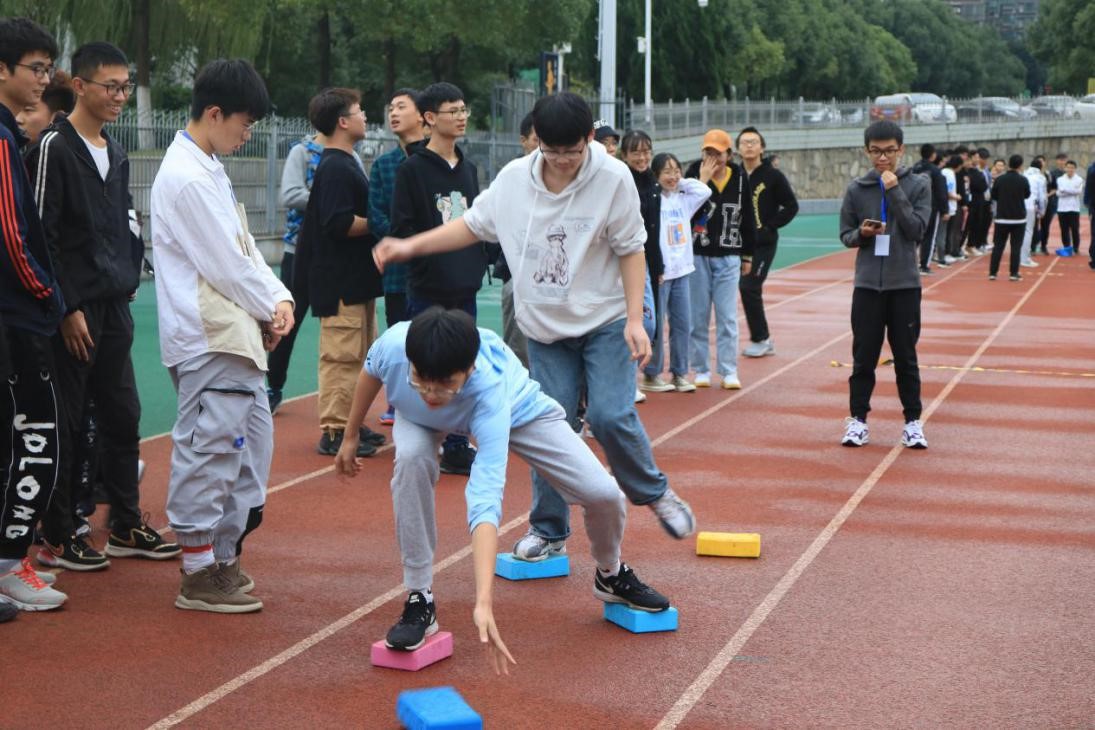 本次运动会共有七个项目,分别是摸石过河、一圈到底、两人三足、开心转转转、盲人乱打、珠行万里和乒乓投篮。运动会如火如荼地进行着,绿茵场的每一角都充溢着同学们青春活力的欢笑,跑道上的每一寸都充斥着激情四射的呐喊。参赛者在“摸石过河”中互相搀扶,一致到达终点,在“一圈到底”中双手紧握,默契接力让呼啦圈顺利滑过,在“珠行万里”中齐心协力,端稳扶平让珠子滚到终点……放眼望去,操场上一幕幕都是团结互助的场景,而那一抹抹青春的色彩,肆意勾画于运动场上。在这样的感染下,老师们也加入比赛,挥洒着欢乐的汗水。
