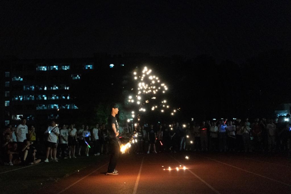 开幕式伊始,同学们紧密地围坐一起,翘首期待着即将到来的演出。erase音乐协会开场RAP,双截棍社团挥舞着闪耀冷焰光芒的双截棍,成功点燃现场气氛。紧接着观众互动环节中,同学们与辅导员以“你划我猜”游戏进行了一场“切磋”,伴随着阵阵欢笑,乐声再次响起,erase乐队登台演唱节目间的插曲,灵动轻柔的歌声撩拨着同学们的心弦。最后,龙狮队的舞龙秀中,团龙起伏、快速游龙等专业表演动作引得同学们阵阵欢呼,展现着独属于中南学子的青春与活力。