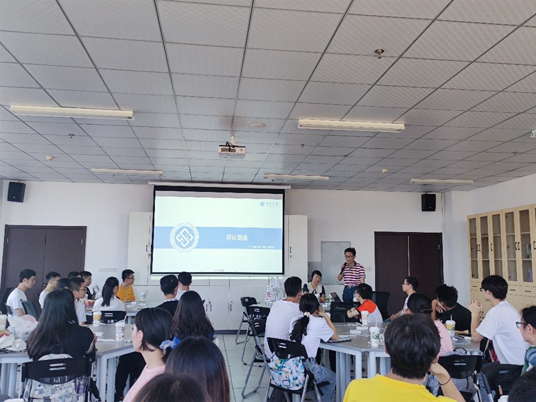 座谈会开始,刘逸峰老师通过往年科协的相关活动照片开场,对先前的活动进行了简单的总结评价。然后是师长寄语环节,老师们对于科协的工作表示肯定,对科协的发展给予大力支持,表达了对17级学长学姐们的不舍和对他们未来的祝福,激励科协现任成员以学长学姐们为榜样,砥砺前行。