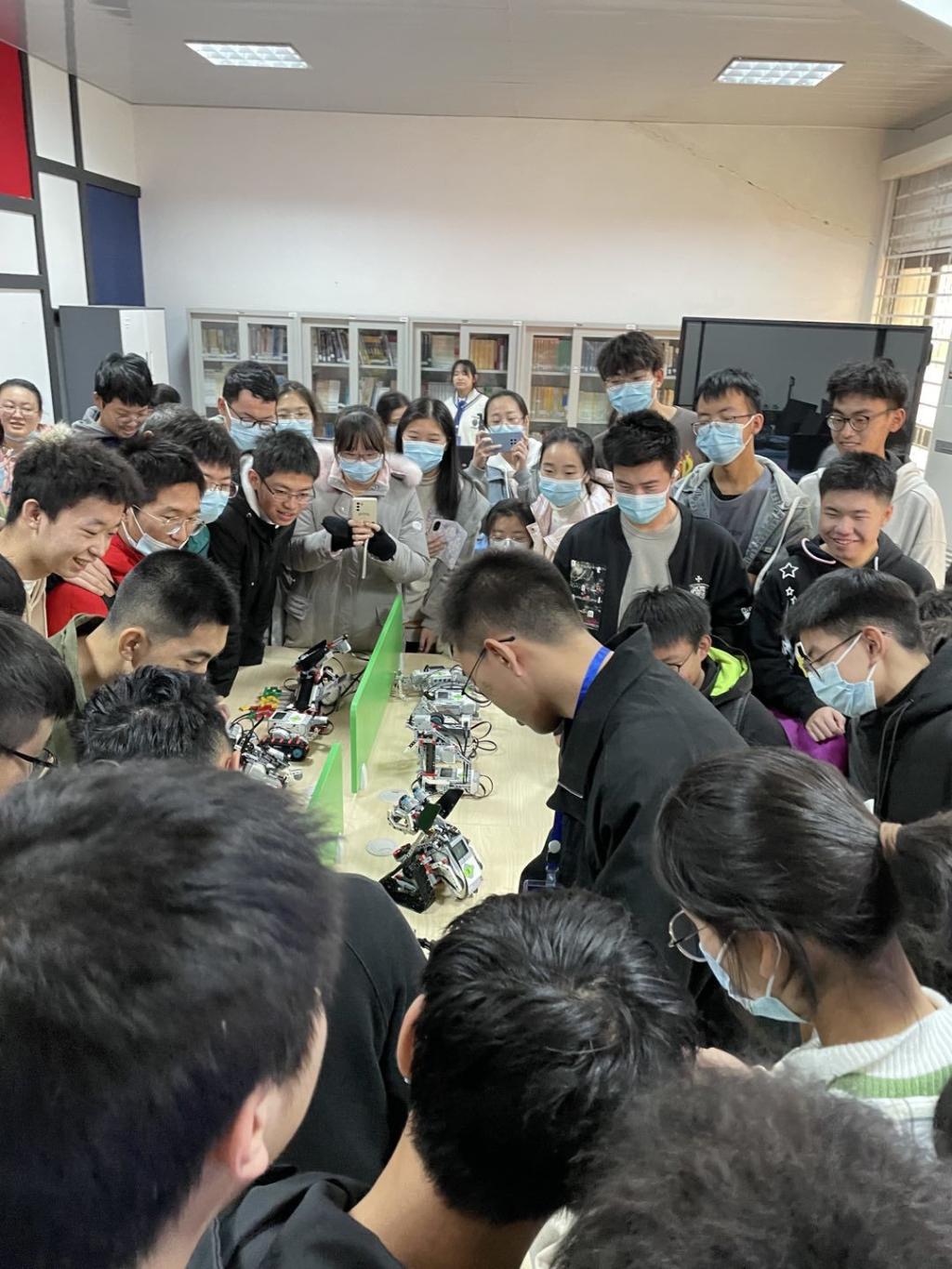 的同学们有序地参观了双创基地,学习了解创新创业相关内容,同学们的创新意识得到强化。
