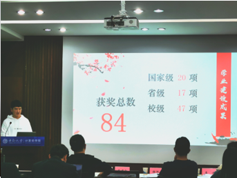 最后进行的是先进班集体标兵答辩。各答辩代表从班级简介、学风建设、班级荣誉等方面介绍了班集体建设成果。计算机1807班以其独特的班风班训以及颇有成效的考试月自习制、学习小组制、一对一导师制等吸引了全场目光。计科1807班获得过众多荣誉,实现了班级成员奖学金全覆盖。该班全员参与学科竞赛,获奖总数达84项,包括国家级20项。在创新创业方面实现全员立项,成果斐然。