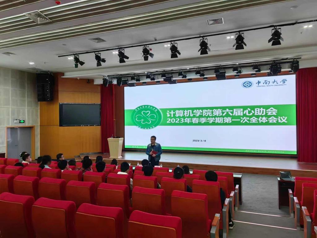 朋辈心理互助会在信息楼108召开2023学年春季学期第一次全体大会,心理专干许宁老师、何星霖老师参加大会并就相关工作与朋辈心理互助会的同学们做了充分交流。