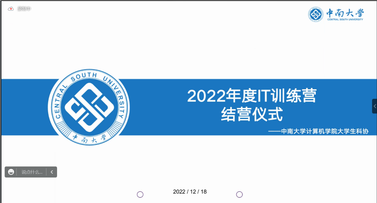 大学生科学技术协会(以下简称大学生科协)举办的“IT训练营”采取线上线下混合式教学的方式,于12月18日上午10点整,在最后一次的课程结束后,IT训练营活动举办了结营仪式。