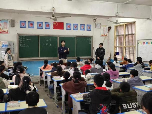21级辅导员宋晓萌老师为228班的全体学生开展团体心理辅导,实践团成员加入到班级小团体中,与学生们一起活动,有的学生兴奋地告诉调研团成员自己的梦想是和你们一样上大学,然后当一名乡村教师。在227班级课堂上,为了激发同学们的创新动力,促进教育下乡、科技下乡,袁熠同学生动有趣地介绍了计算机科学与网络的基本原理与精彩之处,直观的视频讲解极大地激发了久居山村的同学们对高新科技的好奇与向往。