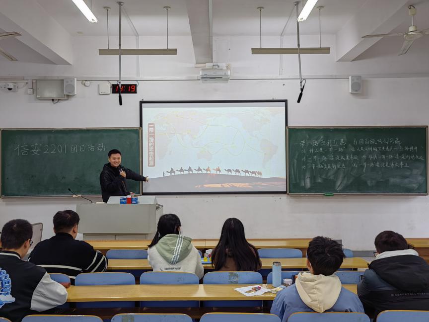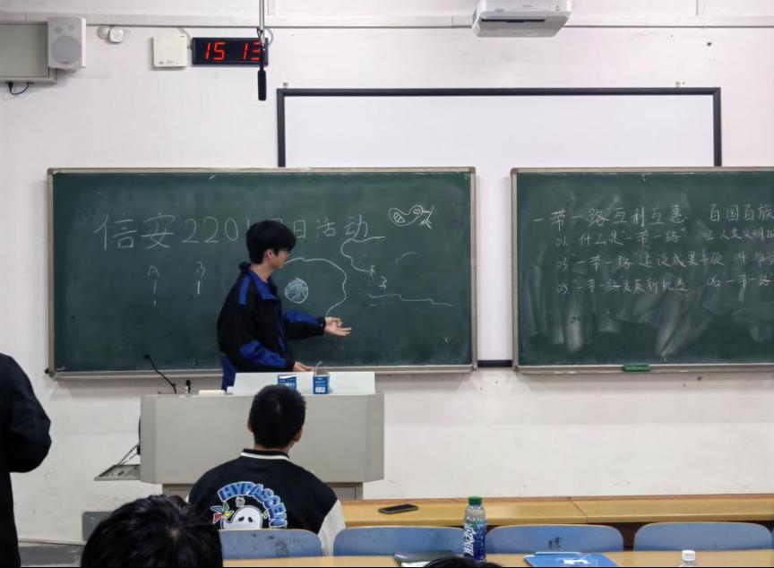 恰逢“一带一路”政策提出十周年,为深化班级同学对“一带一路”相关政策的理解,拓展全球化视野,2023年11月15日,博天堂娱乐城 信息安全2201班在B305教室开展了本月的“一带一路”主题团日活动。