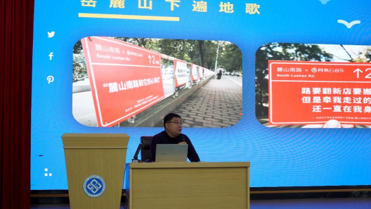 王轩的讲座分为“岳麓山下好读书”“岳麓山下清风朗”“岳麓山下校园美”三个部分。他指出,作为宣传人,我们应当去找好物理定位,文化定位,懂宣传,会宣传,把我们的好人好事、中南现象都用心地“讲”出来。提到,我们的宣传工作虽然源于生活,但要高于生活,将现实生活融入到宣传工作中来,让宣传不空,切合实际,吸引眼球。
