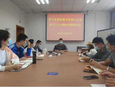 第十五期发展对象第二小组成功开展学习党的二十大精神专题研讨会,此次会议由第二小组组长郑力生主持,第十五期发展对象第二小组全体成员参与了此次学习研讨会。
